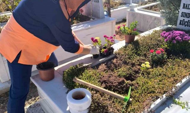 Anneler Günü'nde mezarlıkları yeşillendirdiler