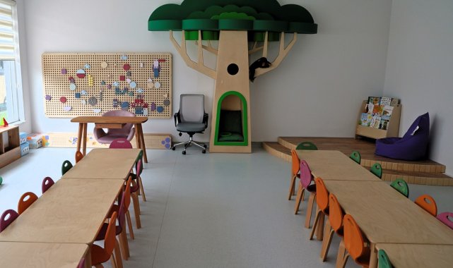 Tesiste ayrıca, kadınların spor salonundan aktif olarak yararlandığı anlarda çocuklarının güvenli şekilde vakit geçirebilmesi için "anne yanı" sınıfları oluşturuldu.