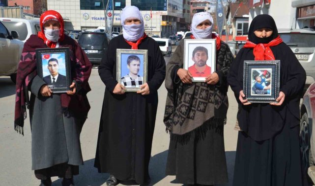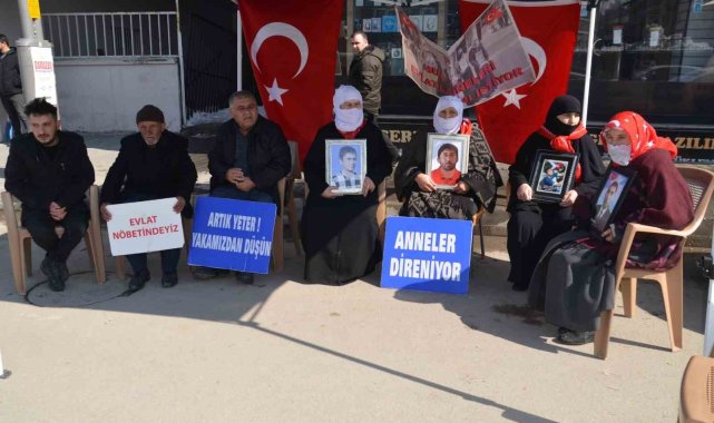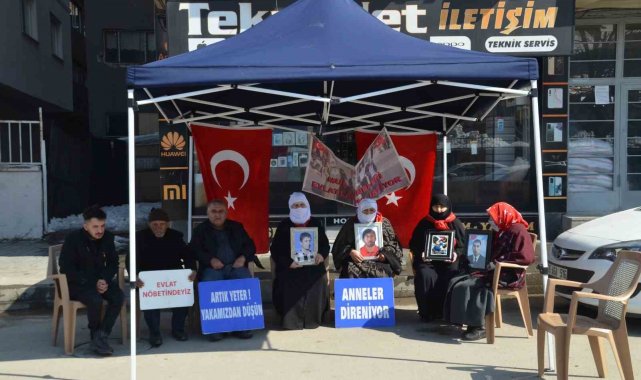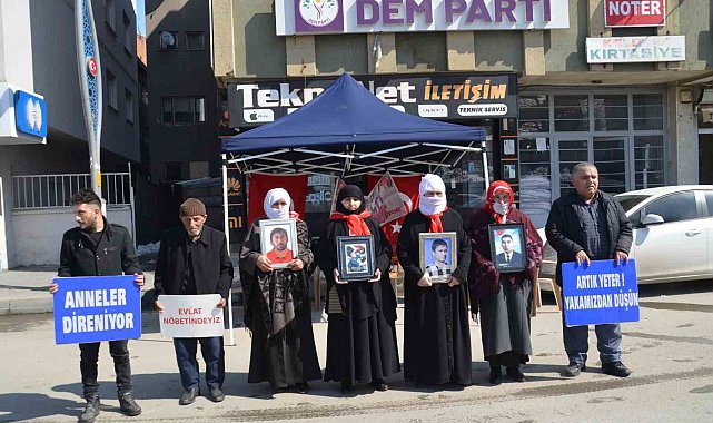 Muş'ta çocukları terör örgütü PKK tarafından kaçırılan aileler, DEM Parti İl Başkanlığı önündeki eylemlerine devam ediyor.