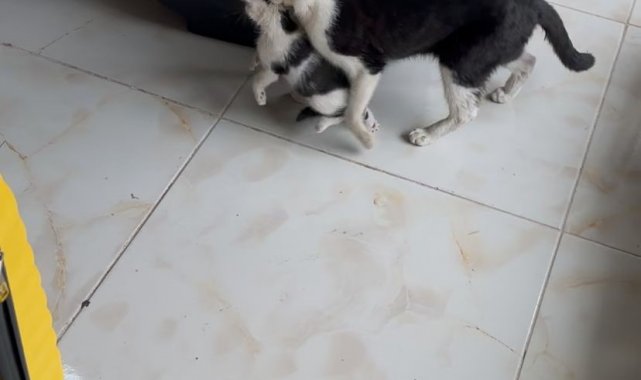 Anne kedinin ilk olarak dükkana gelişi, dükkanı gezmesi ve yavrularını ağzında taşıması güvenlik kamerasına yansıdı. İkinci yavrusunu getirdiğini fark eden Barış Şener'in çektiği videoda ise durum karşısında, "Sen tüm yavrularını tek tek buraya mı taşıyacaksın? Benden güven buldun şimdi de tek tek yavrularını buraya getiriyorsun" ifadelerini kullandı.