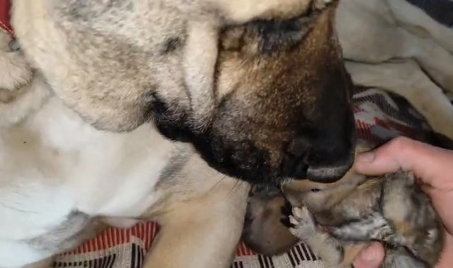 Annelik içgüdüsü sınır tanımadı: Kangal köpeği şimdi de tavşanlara bakıyor