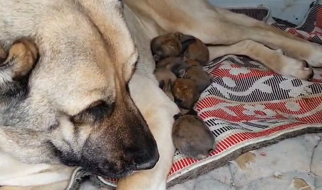 Tokat'ta anneleri ölen 7 Belçika Malinois yavrusunu sahiplenerek annelik yapan Kangal köpeği, şimdi de annesiz kalan tavşanları sahiplendi. 'Maya' adı verilen Kangal köpeğinin annelik içgüdüsü ile tavşanları emzirmesi ve koruması görenleri duygulandırdı.