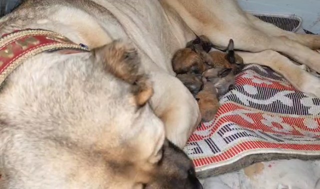Annelik içgüdüsü sınır tanımadı: Kangal köpeği şimdi de tavşanlara bakıyor