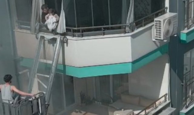 Bu sırada yan apartmana eşya taşımak için gelen yük asansörü binaya yaklaştırıldı. Ancak kimse yük asansörüne binip 13'üncü kata çıkmaya cesaret edemedi. Baba ise kucağındaki bebekle çaresizce beklemeye başladı.