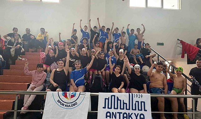 Antakya Belediyesi Spor Kulübü yüzme sporcuları, İskenderun'da düzenlenen 23 Nisan Ulusal Egemenlik ve Çocuk Bayramı Yüzme Müsabakalarında kazandıkları madalyalarla büyük başarı elde etti.