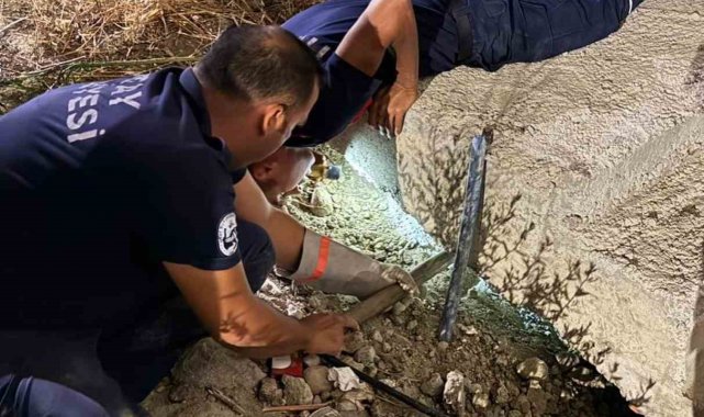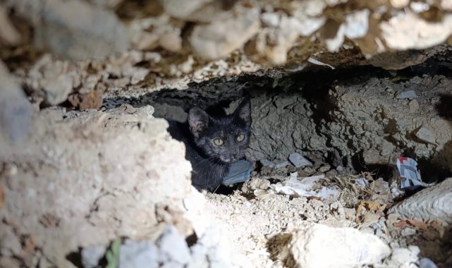 Antakya'da beton boru içinde sıkışan kedi kurtarıldı