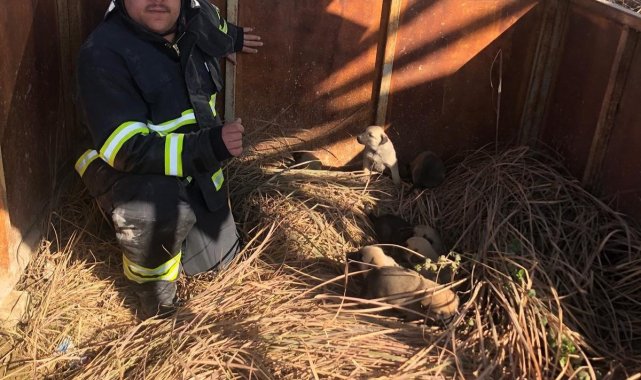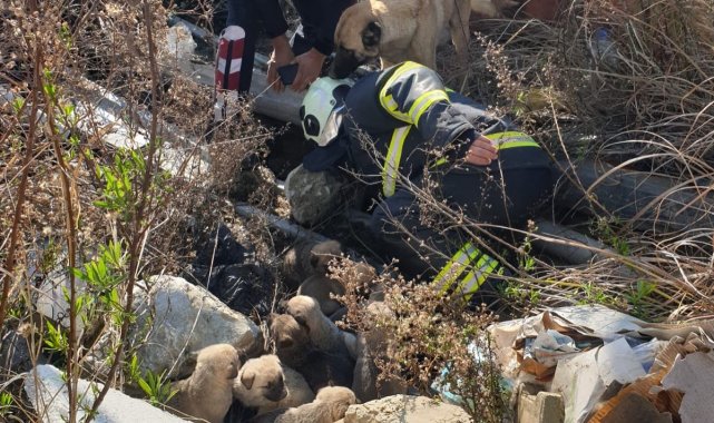 Hatay'da çukura düşen yavru köpekler itfaiye ekibi tarafından kurtarıldı.