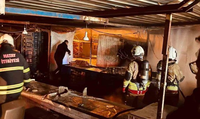 Hatay'da alevlere teslim olarak yanan iş yeri kullanılmaz hale geldi.