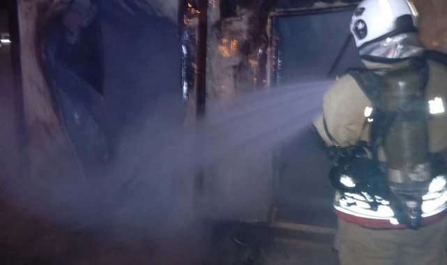 Hatay'da alevlere teslim olan konteyner yanarak kullanılmaz hale geldi.