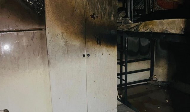 Hatay'da depremzede ailenin yaşadığı konteyner alevlere teslim olarak yandı.