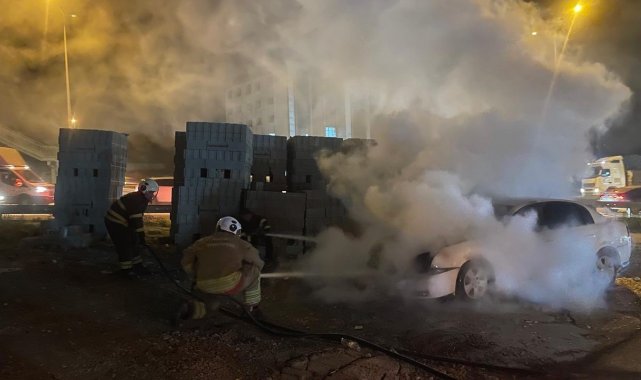 Hatay'da seyir halindeyken yanmaya başlayan otomobilde çıkan yangını itfaiye söndürdü.