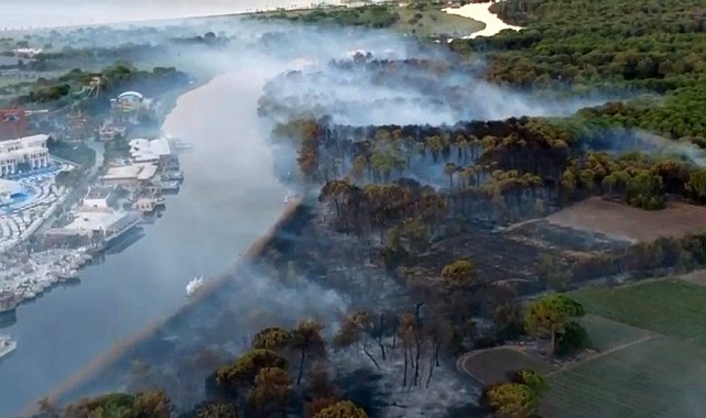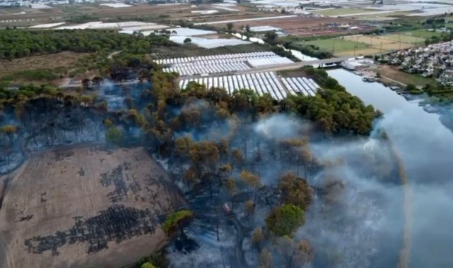 Aksu ilçesi Kumköy Mahallesi'nde dün akşam 21.00 sıralarında ormanlık alanda çıkan yangın ekiplerin yoğun mücadelesi sonucu 3 saatlik çalışmayla kontrol altına alınırken, sabahın ilk ışıklarıyla birlikte bölgedeki son durum dron kamerasına yansıdı. Soğutma çalışmalarının sürdüğü alanda yanan alanlardan dumanların çıktığı da görüntülere yansıdı.