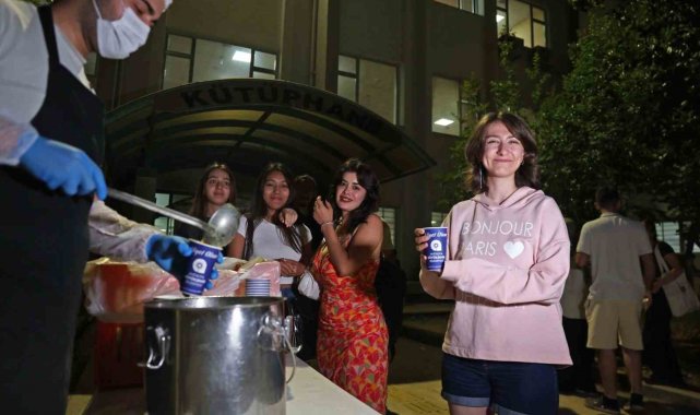 Kütüphanede akşamları ders çalışan öğrencilerin sıcak çorba ile içleri ısınırken, bir süre derse mola verme imkanı sağlanıyor. Sınav haftası olan 26 Mayıs-4 Haziran tarihleri arasında öğrencilere mercimek, tarhana, ezogelin ve domates çorbası ikramı devam edecek.