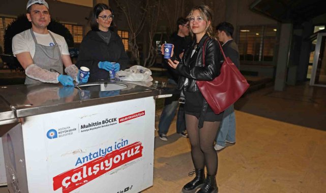 Antalya Büyükşehir Belediyesi, sınav dönemlerinde geleneksel hale getirdiği sıcak çorba ikramını bu yıl da sürdürüyor. Vize haftasında Akdeniz Üniversitesi öğrencilerine çorba dağıtımı yapılıyor.
