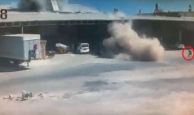 Öte yandan patlama anı güvenlik kameralarına yansımıştı.