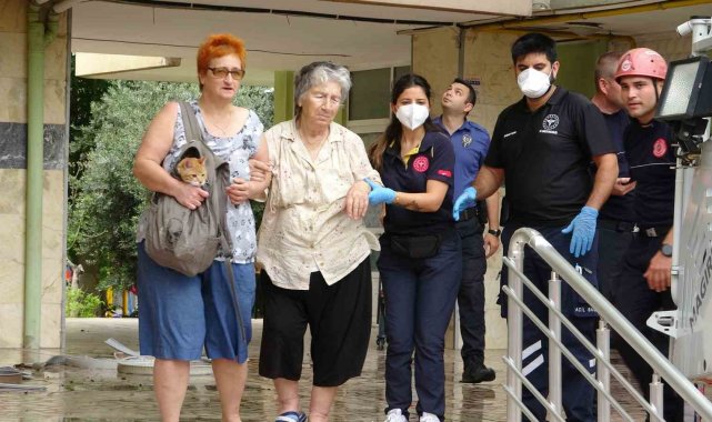 Yangının çıktığı ev ve üst katlarda maddi hasar meydana gelirken, alevler ve duman nedeniyle mahsur kalan 6 kişi itfaiye ekipleri tarafından kurtarıldı. İtfaiye ekibi ve asansörlü vinç ile kurtarılan 6 kişiden dumandan etkilenen 4'ü ambulansla hastaneye götürüldü. İtfaiye ekipleri tarafından balkondan kedisi ile birlikte kurtarılan Serpil Pınargözü, "Hiç haberimiz olmadı. Biz evde 4 kişiydik 2'si hala evde ama şu an yangın bitti. Evde eşim ile kızım var orada bekliyorlar. Simsiyah oldu evin için. Hemen üst katında olduğumuz için olduğu gibi bize geldi. Kedim herkesten çok korktu" dedi.