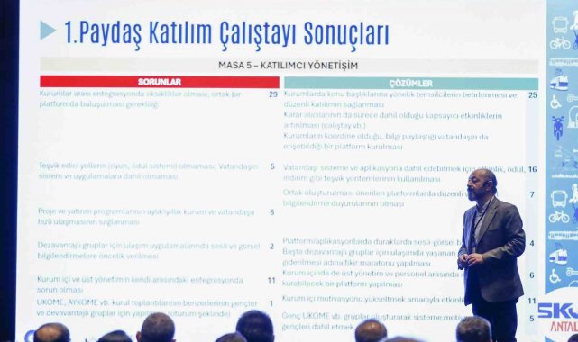 Boğaziçi Proje Mühendislik'ten Dr. Murat Çağatay, Antalya'da aylar süren kapsamlı bir çalışma yürüttüklerini, anketler yaptıklarını ve 160'ın üzerinde kavşakta araç ve kesit sayımları gerçekleştirdiklerini aktardı. Bu toplantılara çok kapsamlı bir katılım olduğunu söyleyen Çağatay, "Çalışmalarımızda elde ettiğimiz verileri sizlerde paylaştık. Sizlerin de fikirlerini alarak, taleplerini alarak bir çözüm oluşturacağız. Çalışmalarımızı haritalar ve paftalar üzerinde yaparak planı somutlaştıracak ve ASKUP'a nihai halini vereceğiz" dedi.