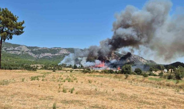 Antalya'nın Serik ilçesinde ormanlık alanda çıkan yangında 3 ev ve 4 ahır zarar gördü. Orman yangının ilk çıkış anı güvenlik kamerası tarafından anbean kaydedildi.