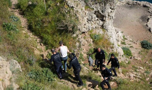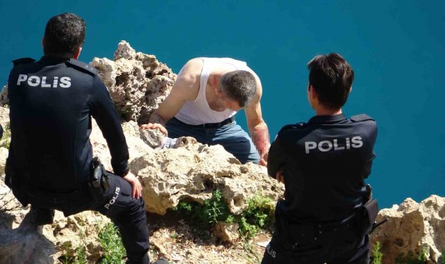 Antalya'nın Muratpaşa ilçesinde, 40 metre yükseklikteki falezlerin kenarında kendisine kesici aletle zarar verip intihar girişiminde bulunan adam polis ekiplerinin uzun süren çabaları sonucu ikna edilerek kurtarıldı.
