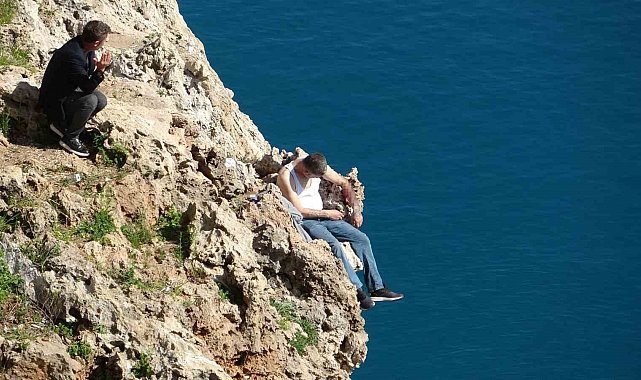 Antalya'da 40 metrelik falezlerin ucunda can pazarı