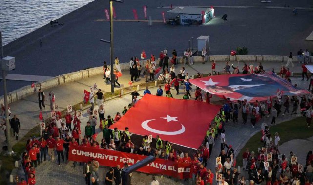 Konyaaltı Varyant'ta toplanan kalabalık yürüyüş güzergahını doldurdu. Antalya Valisi Hulusi Şahin, Büyükşehir Belediye Başkan Vekili Büşra Dirgen Özdemir, sivil toplum kuruluşlarının temsilcileri ve yüzlerce vatandaşın katıldığı yürüyüşte 400 metrelik dev Türk bayrağı taşındı.
