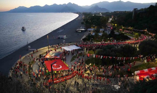 Öğrenci Andı ve Atatürk'ün Gençliğe Hitabesi hep birlikte okundu; kıyı şeridi boyunca balkonları dolduran vatandaşlar da alkışlarıyla bu anlara eşlik etti. 7'den 70'e her yaştan Antalyalı, sloganlar ve marşlar eşliğinde Cumhuriyet'in 102. yılının coşkusunu yaşadı. Meşalelerin aydınlattığı kortej, kilometrelerce yürüyüşün ardından Cumhuriyet Meydanı'na ulaştı.