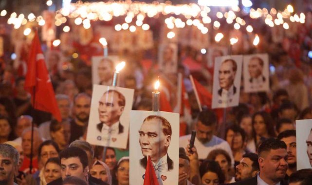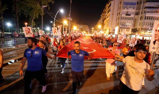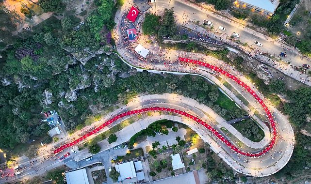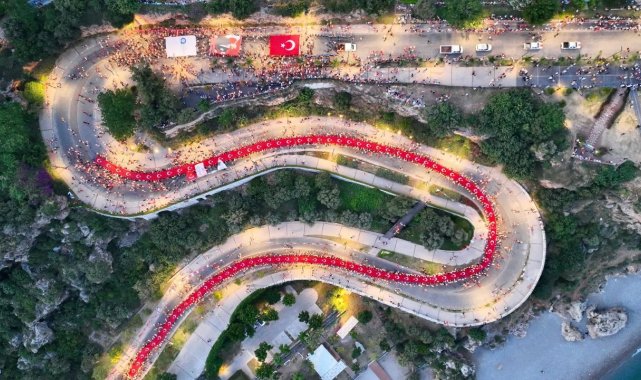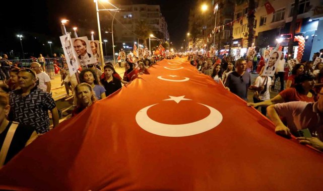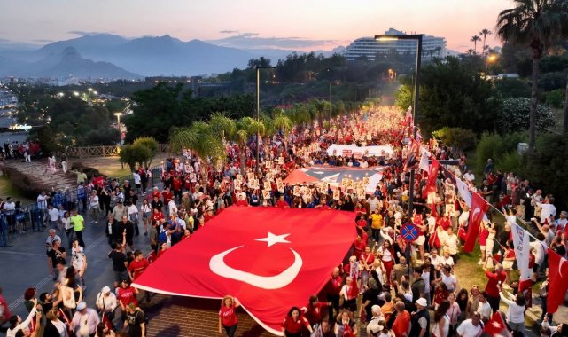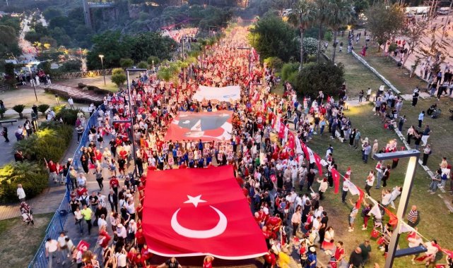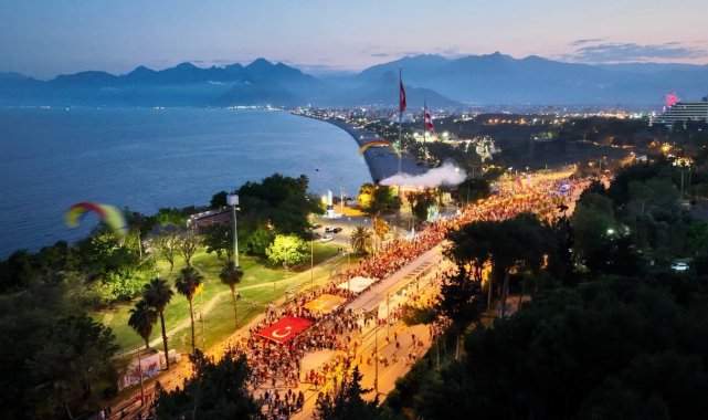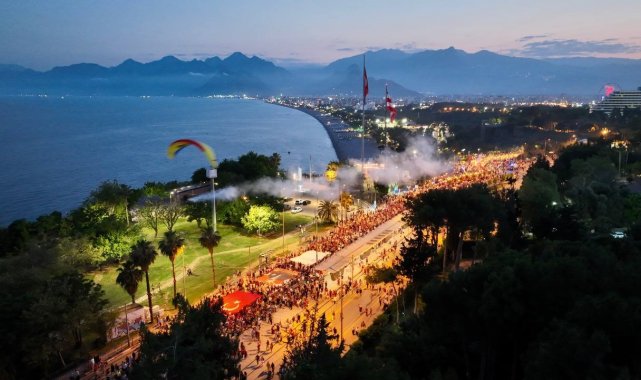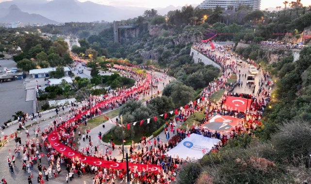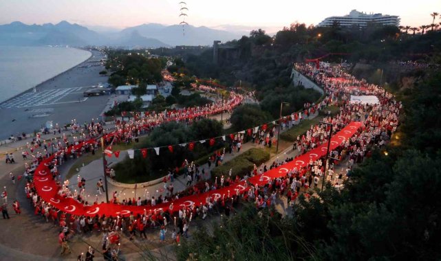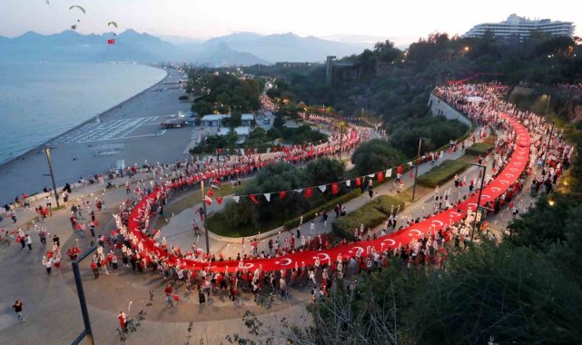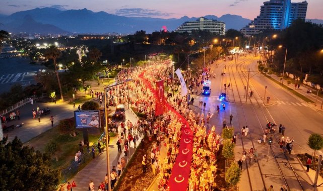 Antalya'da 400 metrelik dev Türk bayrağı ile 'Fener Alayı' düzenlendi