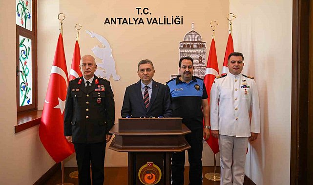 Antalya Valisi Hulusi Şahin, Kurban Bayramı dolayısıyla Antalya genelinde alınan asayiş ve trafik tedbirlerine yönelik basına açıklamalarda bulundu. Antalya Valiliği Hükümet Konağında gerçekleştirilen Basın Bilgilendirme Toplantısına Vali Hulusi Şahin'in yanı sıra, İl Jandarma Komutanı Tuğgeneral Tarık Hekimoğlu, İl Emniyet Müdürü İlker Arslan ve Sahil Güvenlik Grup Komutanı Yarbay Tolga Coşkun ve basın mensupları katıldı.