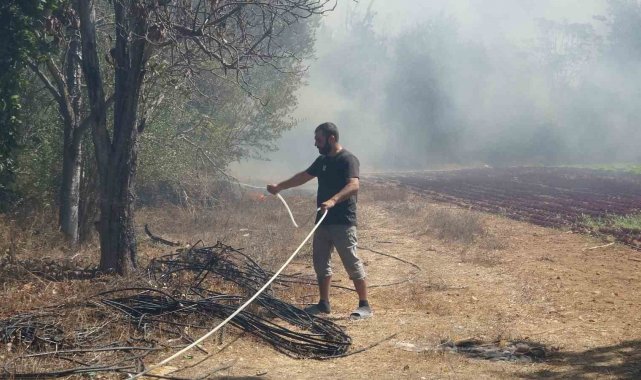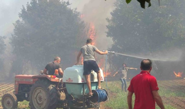 Cadde üzerindeki 2 katlı müstakil ev alevlere teslim olurken, yangın bazı iş yerlerine de sıçradı. Alevler, arı kovanları ve bahçelerde kullanılan tarım malzemelerinin bulunduğu bazı depolarda hasara neden oldu. Geniş bir alanda etkili olan yangın bir akaryakıt istasyonunun yakınına kadar ulaşırken, ekipler herhangi bir olumsuzluk yaşanmaması için istasyon çevresinde önlem aldı. Bölgede yaşayan vatandaşlar, ellerine aldıkları kova, hortum ve traktörlere bağladıkları ilaçlama makineleri ile yangın söndürme çalışmalarına katıldı.