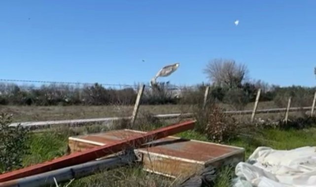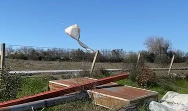 Antalya'nın Serik ilçesine bağlı Çandır Mahallesi'nde öğle saatlerinde aniden oluşan hortum, çilek seralarında hasara yol açtı. Hortumun etkisiyle seralardan kopan parçalar metrelerce havaya savrulurken, yaşanan anlar çevredeki vatandaşlar tarafından cep telefonu kamerasıyla kaydedildi.