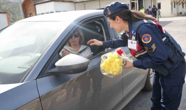 Ayrıca trafik kontrol noktasında kadın jandarma ekipleri kadın sürücülere karanfil verip, bayramlarını kutladı.