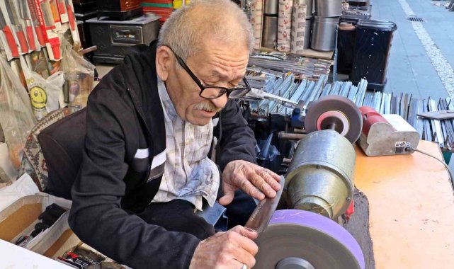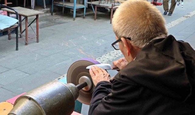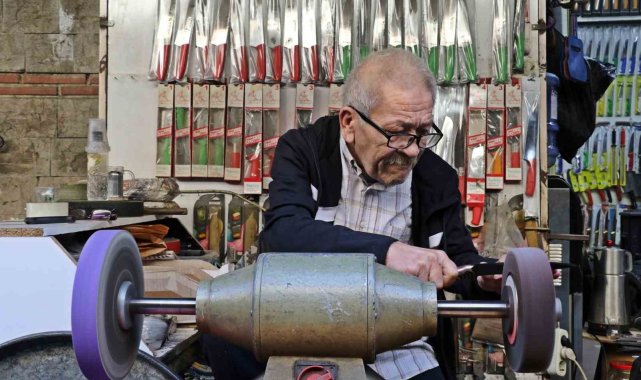 Muratpaşa ilçesi Demirciler Çarşısı'nda bıçak bileme ve satış işini yapan Mehmet Şakar (65), mesleğini 7'nci kuşak olarak ailesinden devralarak sürdürüyor. 15 yaşında babasının yanında mesleğe adım atan Mehmet Şakar, 50 yıldır sabahın erken saatlerinde açtığı iş yerinde bıçak bileme ve satış işi yapıyor. Şakar, ailesinde dededen oğula aktarılan mesleğin kendisinden sonra da oğlu tarafından devam ettirildiğini de söyledi.