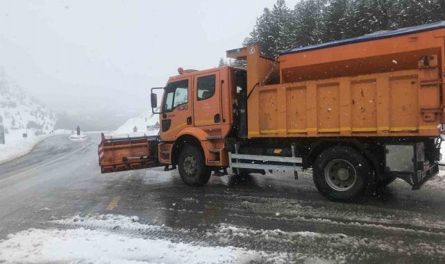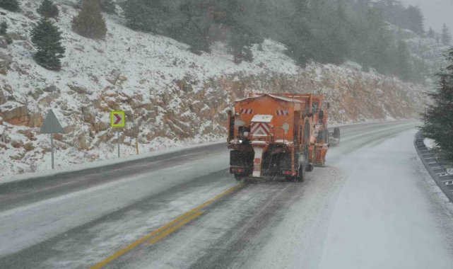 Kar yağışının başlamasıyla birlikte Karayolları Akseki ve Alacabel ekipleri çok sayıda iş makinesi ile kar küreme ve tuzlama çalışması başlattı.