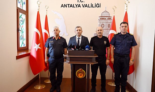 İl Asayiş ve Güvenlik Toplantısı Antalya Valiliği'nde gerçekleştirildi. Toplantıda Antalya Valisi Hulusi Şahin'e Antalya İl Emniyet Müdürü Dr. Sabit Akın Zaimoğlu, Antalya İl Jandarma Komutanı Tümgeneral Ahmet Kavukçu, Sahil Güvenlik Grup Komutanı Yarbay Tolga Coşkun eşlik etti. Antalya'nın huzur ve güvenliği için Jandarma, Emniyet ve Sahil Güvenlik bölgelerinde Eylül ayında asayiş suçlarına yönelik çalışmaları açıklayan Antalya Valisi Hulusi Şahin verileri paylaştı.