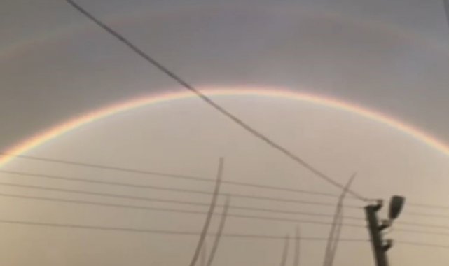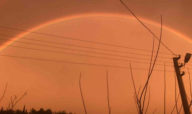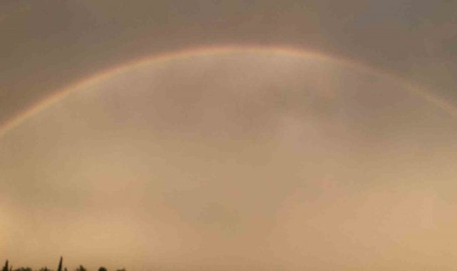 Serik Yeşilyurt Mahallesi'nde gökyüzünde iki gökkuşağını aynı anda gören çiftçi, büyük heyecan yaşadı. O anları cep telefonuyla kaydeden çiftçinin heyecanlı anlatım tarzı tebessüm ettirdi. Yağan yağmur sonrası, çifte gökkuşağını görüntüleyen çiftçi, "Görüyorsunuz anlatmaya gerek yok. Güzel bir duygu. Serik'te semalarda çift gökkuşağı. İnanılmaz anlar. Harika bir his. Bir bakın Allah ve Muhammed aşkına bir bakın. Harika, gökkuşağı tam oluştu arkadaşlar" ifadelerini kullandı.