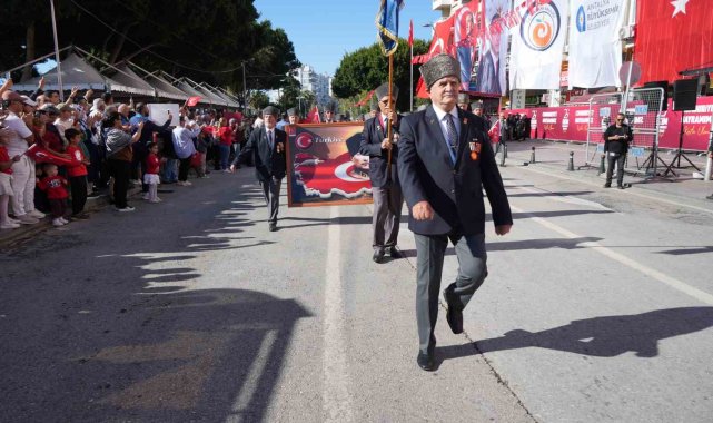 Antalya Valisi Hulusi Şahin, Büyükşehir Belediye Başkan Vekili Büşra Dirgen Özdemir ve Antalya Garnizon Tören Komutanı Tümgeneral Sinan Eren tören aracından geçit alanını dolduran halkı selamlayarak Cumhuriyet Bayramı'nı kutladı. Saygı duruşu ve İstiklal Marşı'nın ardından Antalya Valisi Hulusi Şahin günün anlam ve önemine yönelik konuşma yaptı.