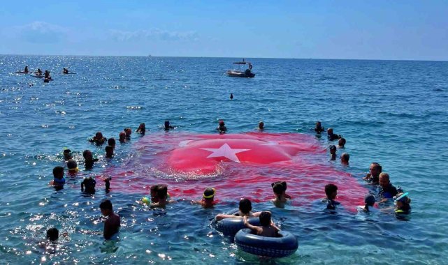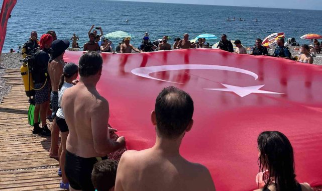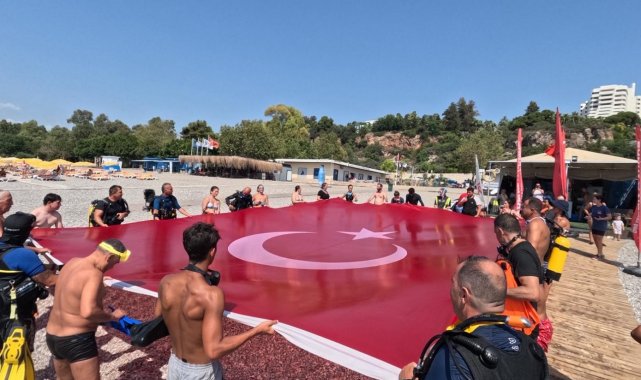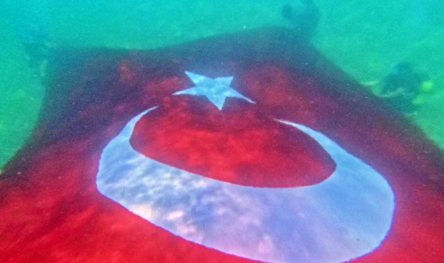 30 Ağustos Zafer Bayramı kutlamaları çerçevesinde yüzücü ve dalgıçlar tarafından denizde dev Türk Bayrağı açıldı.