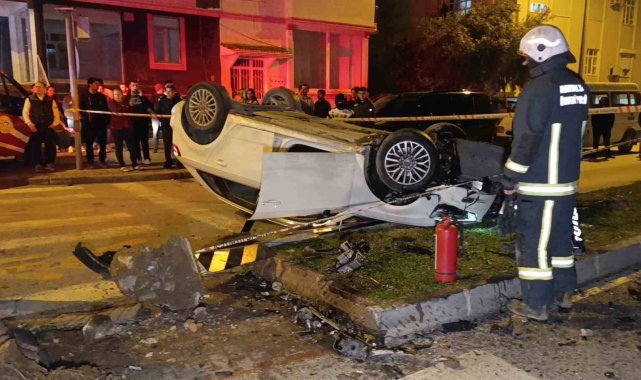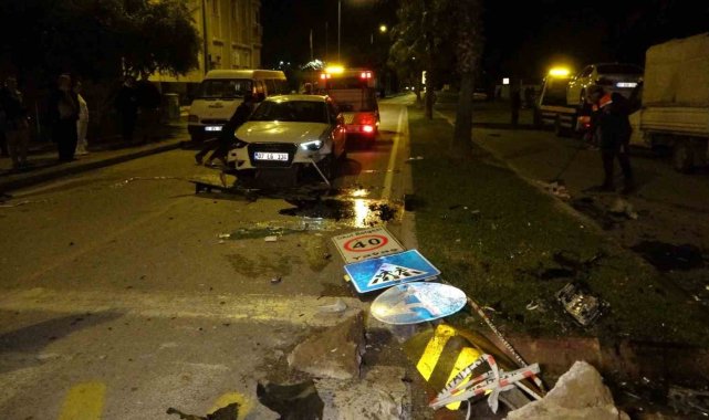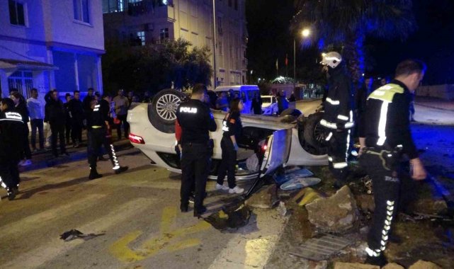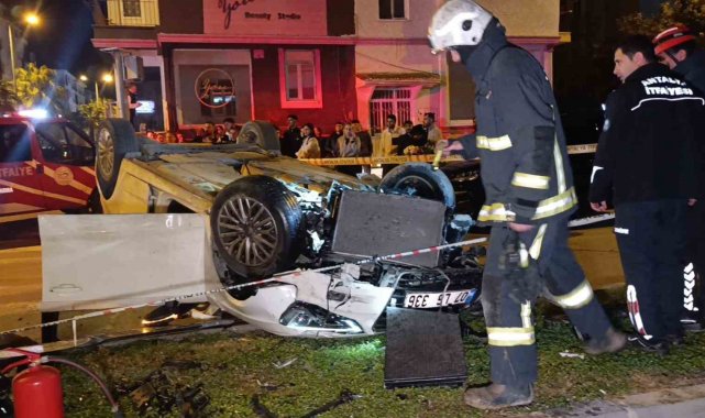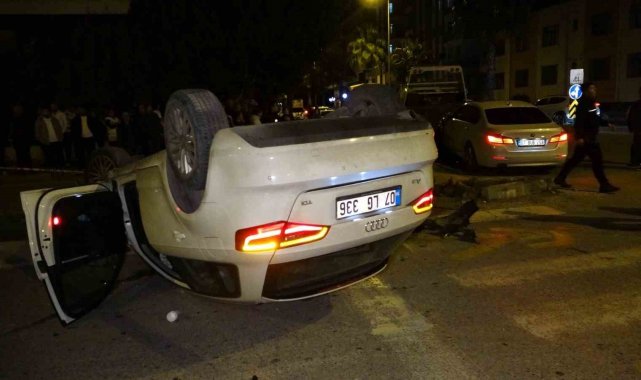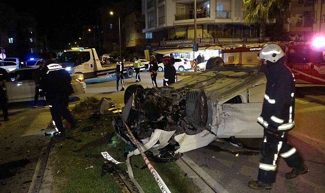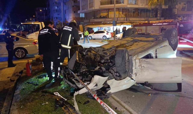 Antalya'da tali yoldan aşırı hızlı şekilde çıkan otomobil seyir halindeki başka bir araca çarparak takla attı. Otomobile çarptıktan sonra refüj ve tabelayı parçalayarak takla atan ve ehliyeti bulunmayan otomobil sürücüsü olay yerini terk ederken, kazada 4 kişi yaralandı.