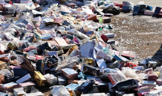 Antalya'da ele geçirilen 2 bin adet sahte parfüm imha edildi