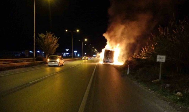 Antalya'da elektronik eşya yüklü nakliye aracı alev alev yandı