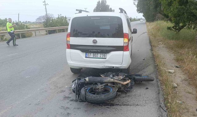 Antalya'nın Manavgat İlçesinde yolcu indirmek için emniyet şeridinde duran hafif ticari araca motosikletin arkadan çarpması sonucu meydana gelen kazada motosiklet sürücüsü ağır yaralandı.