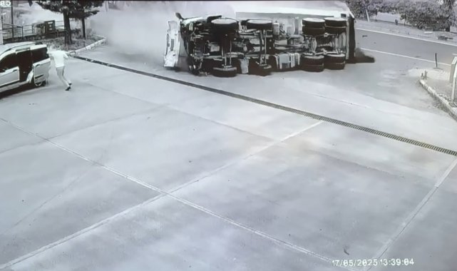 Öte yandan, kaza anı güvenlik kamerasına yansıdı. Görüntülerde kamyonun kamyonete çarpması ardından yan yatarak akaryakıt istasyonuna girme anları ve o sırada istasyonda bulunan vatandaşların kazayı kıl payı atlatması yer aldı. Olayla ilgili inceleme başlatıldı.