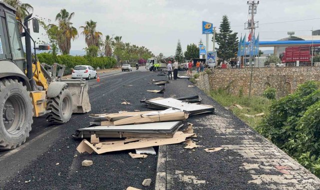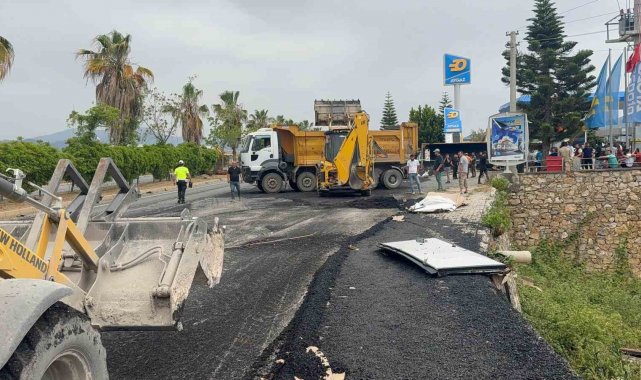 Antalya'da freni patlayan zift yüklü kamyon ortalığı savaş alanına çevirdi