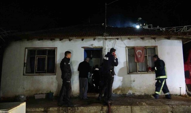 Yangın nedeniyle evin çatısında hasar oluşurken, olayla ilgili inceleme başlatıldı.