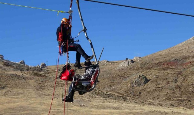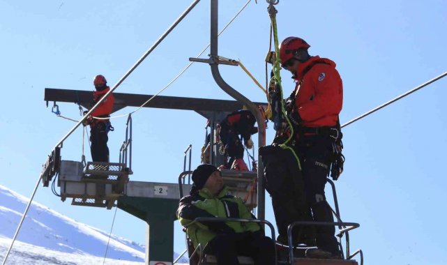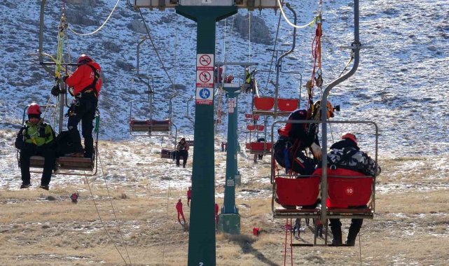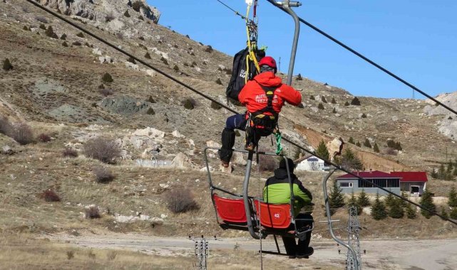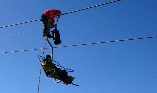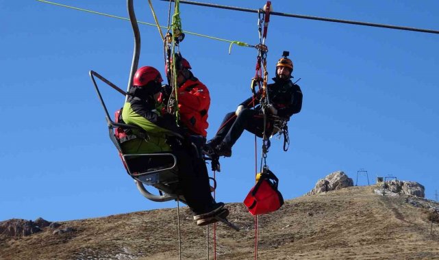Antalya'da Saklıkent Kayak Merkezi'nde Jandarma Arama Kurtarma (JAK) ve STK'lara ait kurtarma birimlerinin katılımı ile muhtemel bir afet durumunda mahsur kalan vatandaşların kurtarılması senaryosuna dayalı olarak 'Teleferik Kurtarma Tatbikatı' yapıldı.