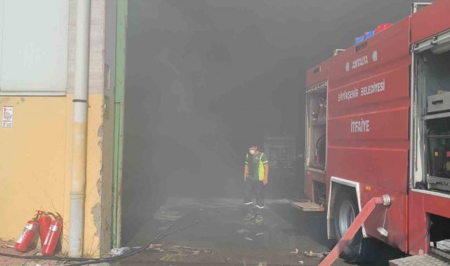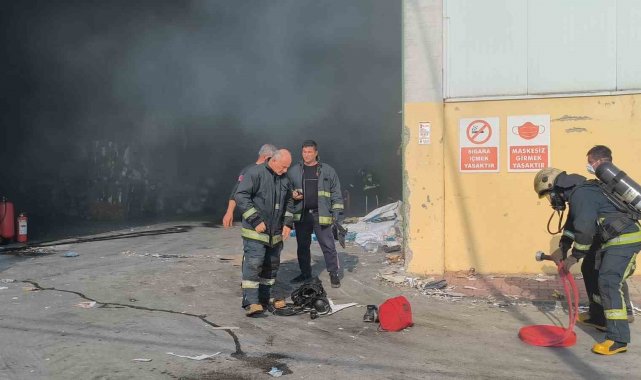 Antalya'da geri dönüşüm fabrikasında preslenen malzemelerin bulunduğu alanda başlayan yangın itfaiye ekiplerinin hızlı müdahalesi ile büyümeden söndürüldü.