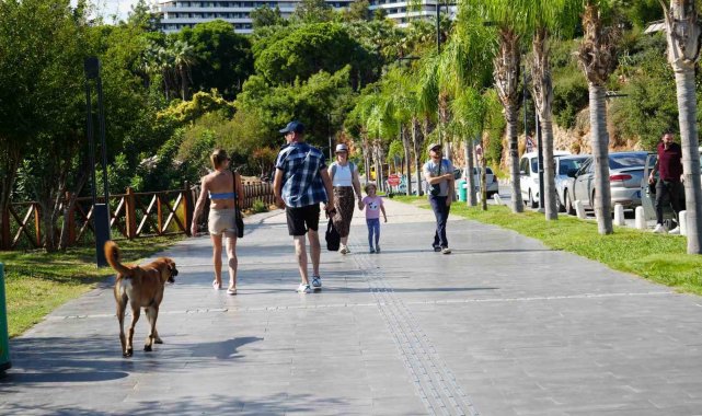 Antalya'da yağışlı günlerin ardından yeniden yüzünü gösteren güneş, kentte hareketliliği artırdı. Havanın 22, deniz suyu sıcaklığının 26 derece ölçüldüğü kentte yazdan kalma bir gün yaşandı. Hafta ortasında Konyaaltı Sahili'ne akın eden yerli ve yabancı turistler, yaz mevsimini aratmayan bir gün geçirdi. Bazı vatandaşlar denize girerek serinlerken, kimileri sahil bandında yürüyüş yapıp hem güneşin hem de manzaranın tadını çıkardı. Bazı vatandaşlar ise çocuklarıyla kumsalda vakit geçirdi. Gün boyu sahil bandında yürüyüş yapanlar, Toros Dağları manzarası eşliğinde fotoğraf çektirdi.