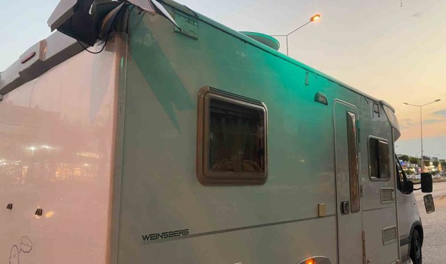 Antalya'da halk otobüsüne karavan tentesi saplandı