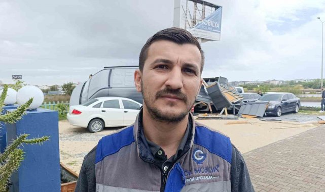 İş yerinde elektriklerin kesilmesinin ardından otomatik kapıyı kapatmak için girişe geldiklerini belirten bir iş yeri çalışanı ise "Otomatik kapıyı kapatmak için enerji sağlamaya çalışırken hortum fırtına karışımı bir şey çıktı. Üçgen evin bir sağa bir sola gittiğini gördük. Sonra otomobilin üzerinden uçup buraya geldi ve yan yattı. Hortum durduktan sonra dışarı çıktık. Bu manzara ile karşılaştık. Üçgen ev yaklaşık 30 metre yol kat edip otomobilin üzerinden geçip buraya geldi" dedi.