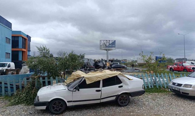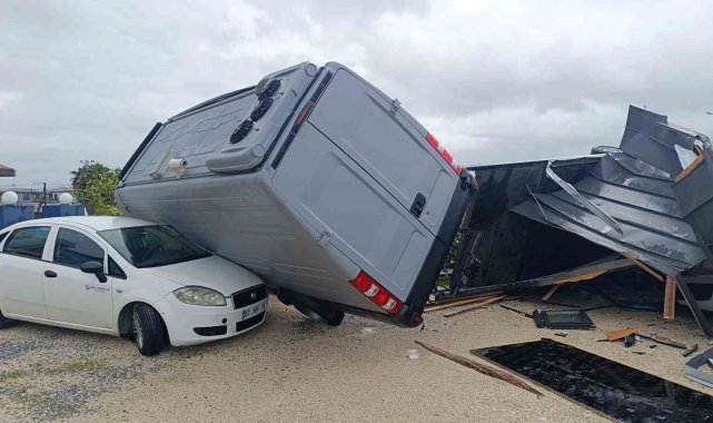 Antalya'da hortum 2 tonluk bungalovu 30 metre sürükledi, karavanı otomobillerin üzerine fırlattı